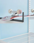 These bracket posts are made from durable plastic and simply attach to the top of Elfa's Click In Shelf Brackets 40. Keep long items like skis, timber, surfboards, ironing boards and even wrapping paper rolls from falling off your Elfa storage system!