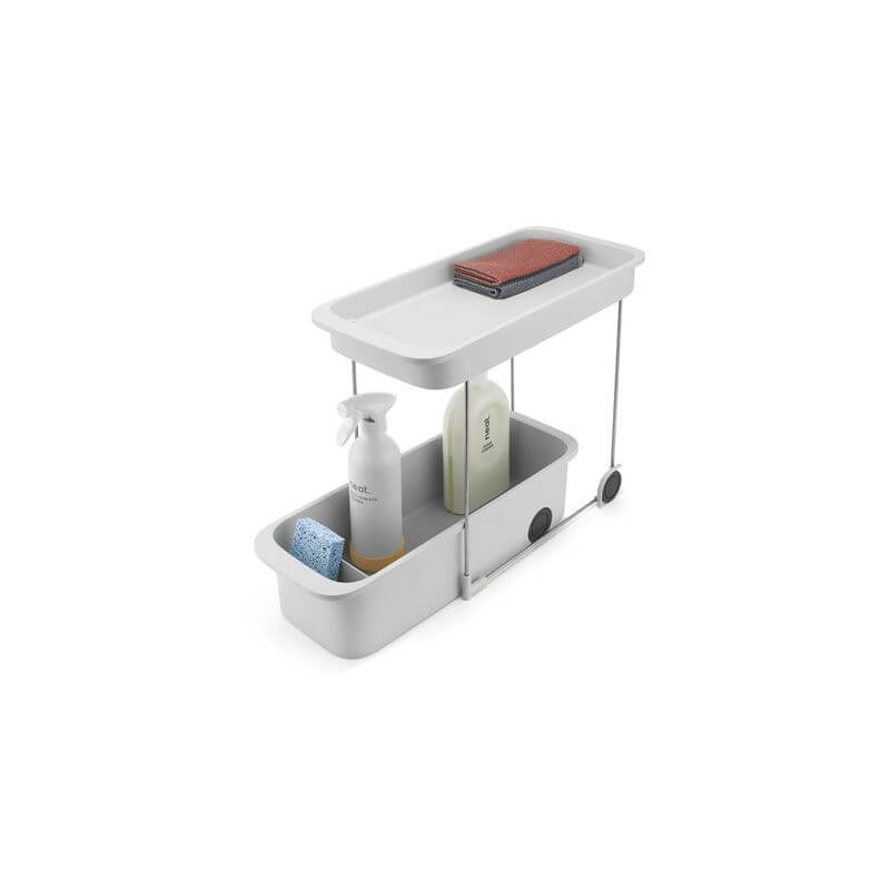 Designed to make the most of tight spaces, it features smooth-rolling wheels and easy-pull handles so you can slide it out without digging around. Two roomy compartments help separate and organise cleaning products, toiletries, pantry staples, and more. Made from at least 50% post-consumer recycled plastic, it’s a smart, sustainable storage solution for any cupboard.