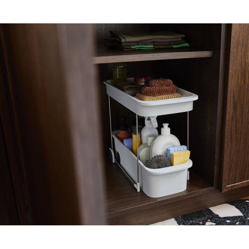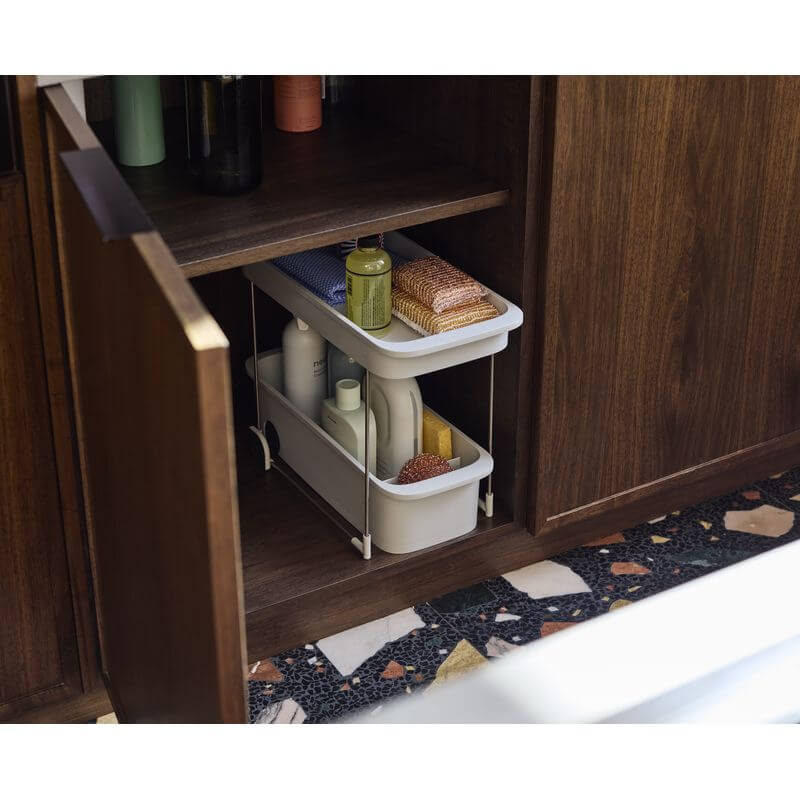 Tidy up under-sink chaos or pantry clutter with this clever Joseph Joseph Cupboardstore 2-Tier Easy Access Storage Caddy.