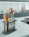 Keep your utensils and kitchen tools stored in style with this Tokyo Rectangular Utensil Holder in Matte Black. This beautiful Italian-made utensil organiser has several divided sections that keep your spoons and ladles separate from spatulas and whisks.